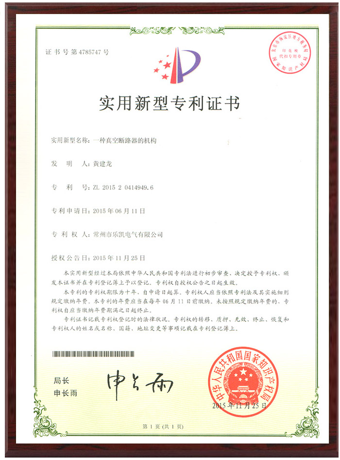 实用新型专利证书